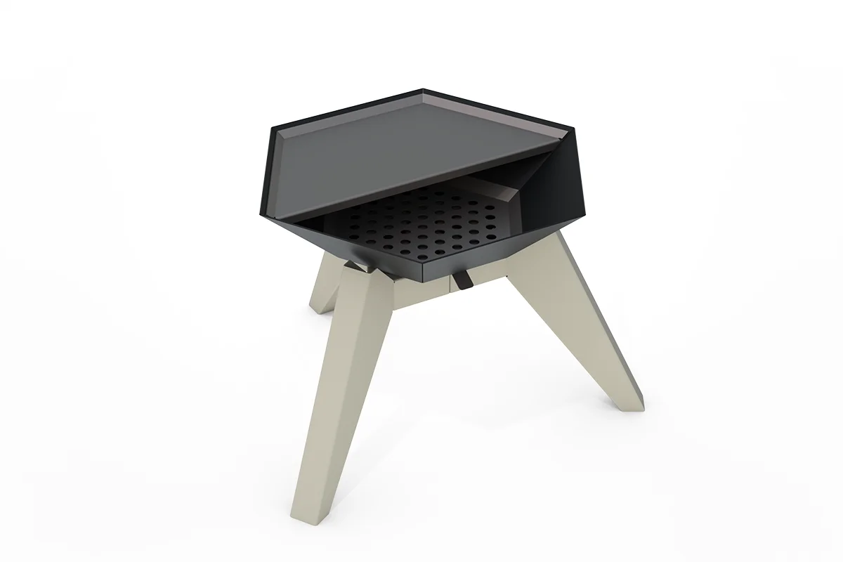 A plate can be placed on the fire pit, allowing for a variety of outdoor cooking options and adaptation to your culinary desires. A special feature of the plate is its half-design, which allows it to be combined with other cooking methods and provides greater flexibility when cooking.