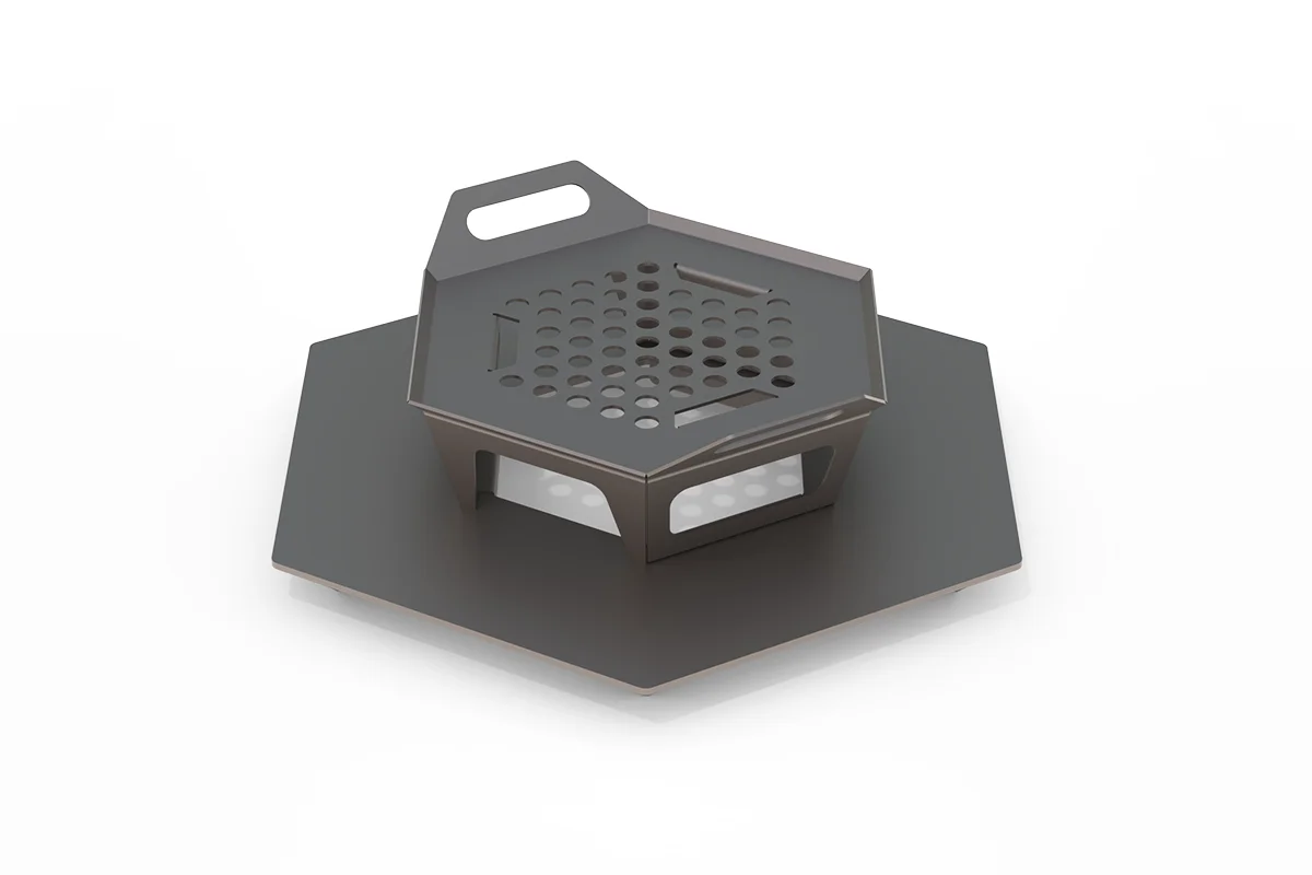 The Fire pit 800 is a functional and compact fireplace standing on three stable legs, which ensure safe and reliable use on various surfaces. It is made of high-quality steel, which gives it exceptional durability and a long service life, while also withstanding high temperatures.