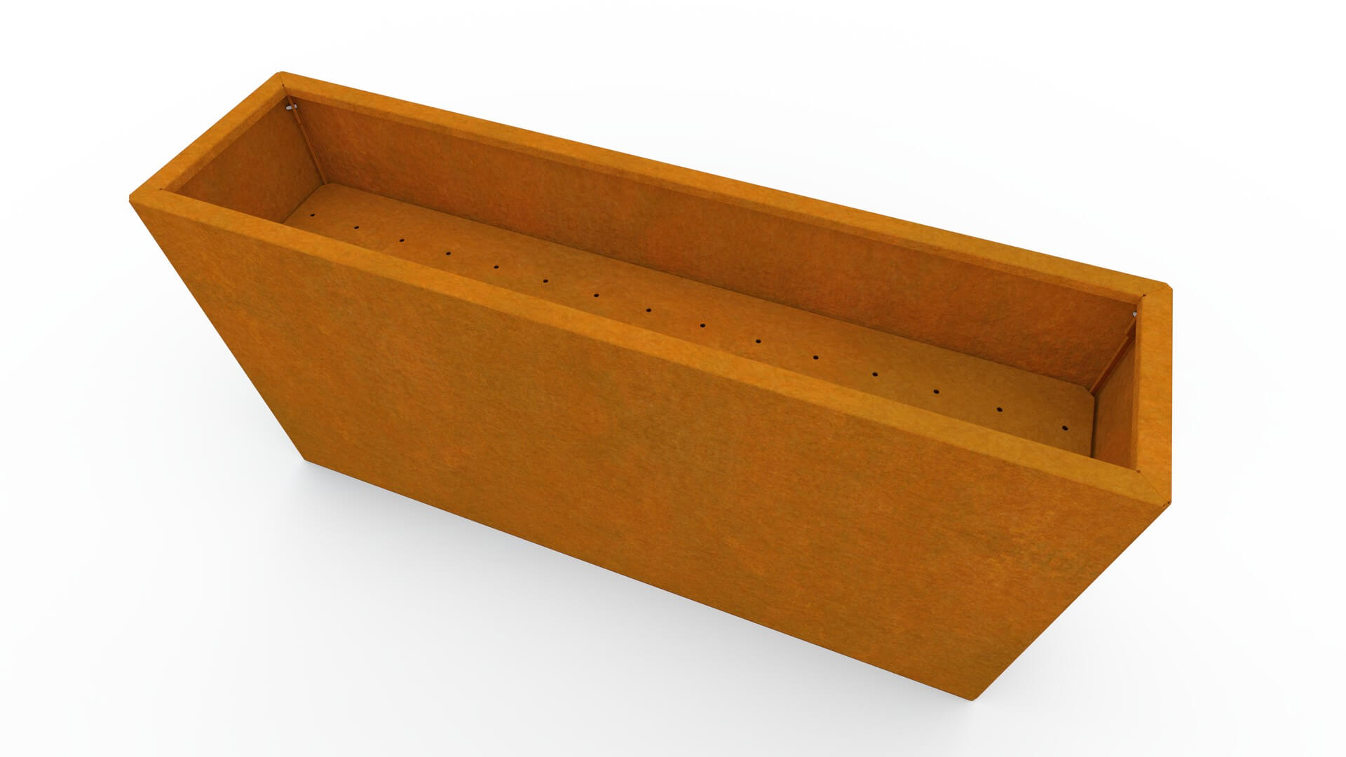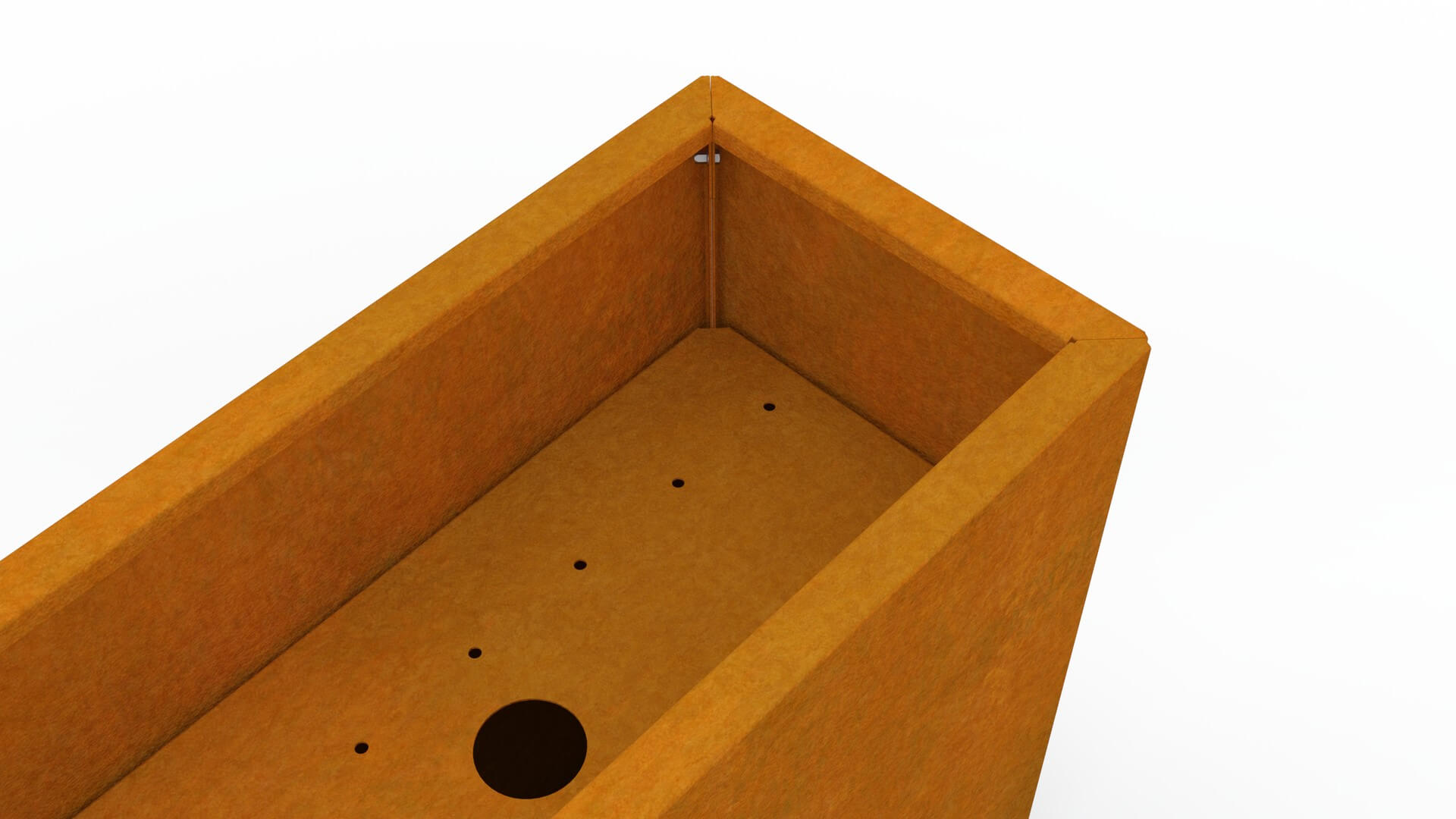 Planter is made from high-quality 1.5 mm thick corten steel, known for its exceptional durability and long lifespan. Over time, corten develops a natural brownish patina that gives it a distinctive, modern appearance. The patina forms gradually and ensures that the planter remains durable in all weather conditions, without the need for painting or additional maintenance.