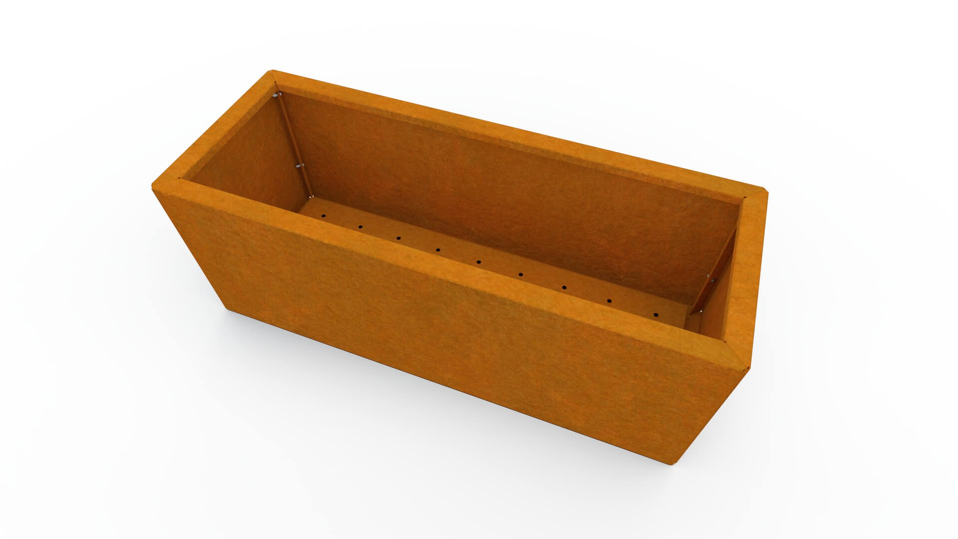 Planter is made from high-quality 1.5 mm thick corten steel, known for its exceptional durability and long lifespan. Over time, corten develops a natural brownish patina that gives it a distinctive, modern appearance. The patina forms gradually and ensures that the planter remains durable in all weather conditions, without the need for painting or additional maintenance.