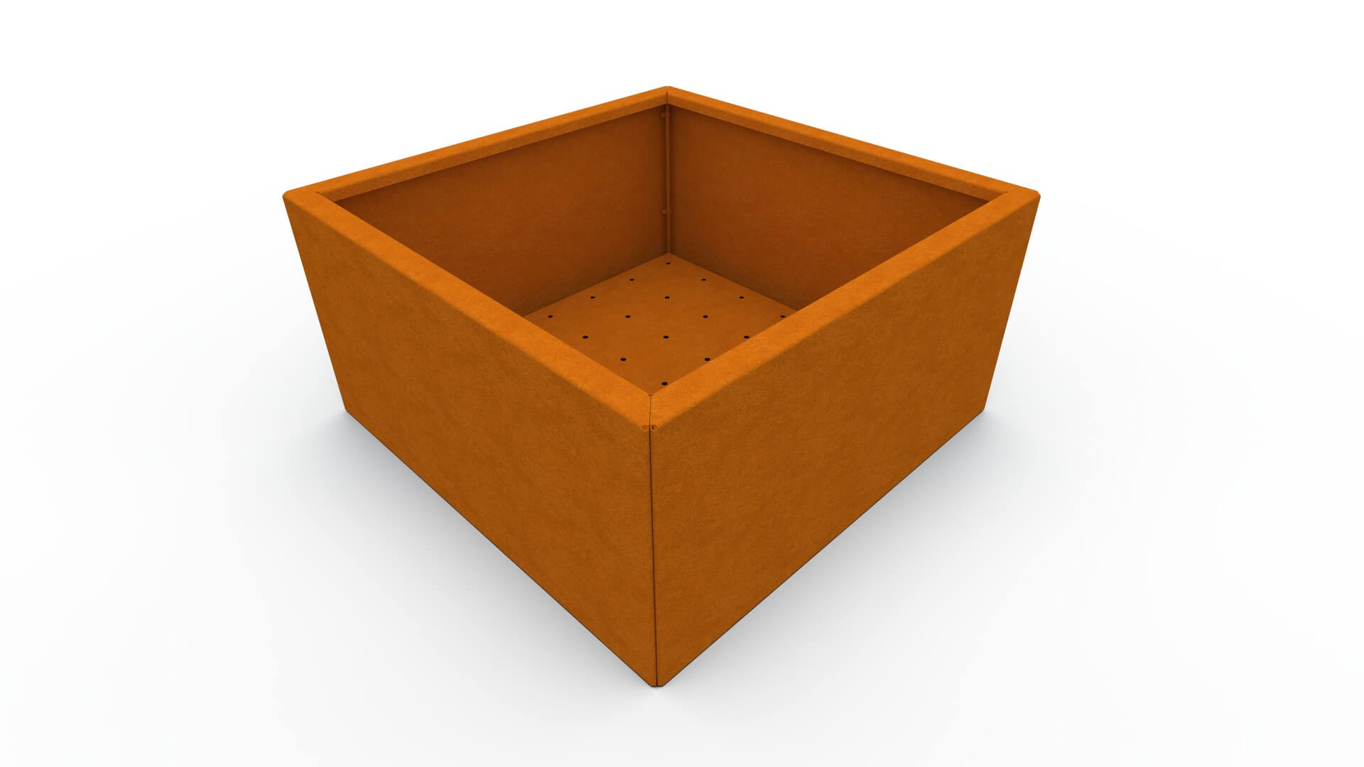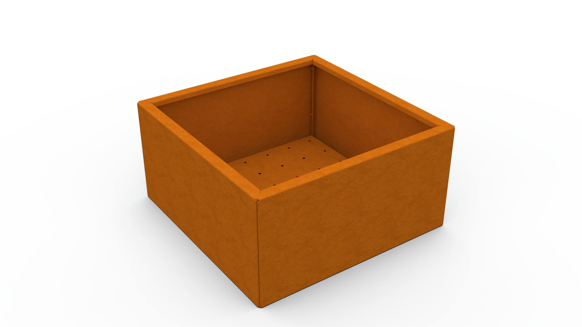 Planter is made from high-quality 1.5 mm thick corten steel, known for its exceptional durability and long lifespan. Over time, corten develops a natural brownish patina that gives it a distinctive, modern appearance. The patina forms gradually and ensures that the planter remains durable in all weather conditions, without the need for painting or additional maintenance.