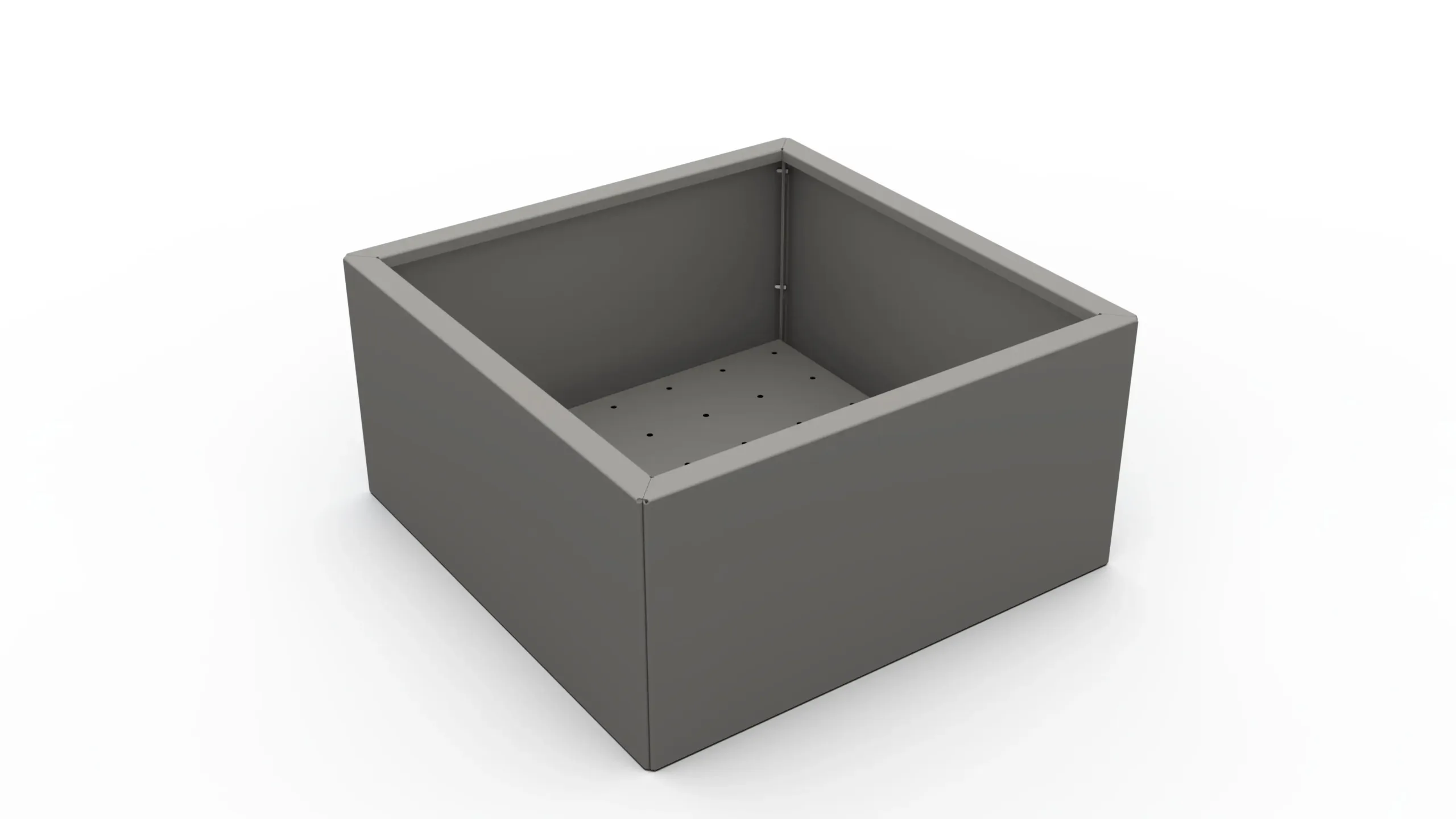 The planter is made of high-quality 1.5 mm thick galvanized sheet metal, which ensures excellent corrosion resistance and a long service life. The surface is painted with UV-resistant and waterproof paint in RAL 9007 FS (grey aluminium), which ensures a modern and elegant appearance and additional protection against weather influences.